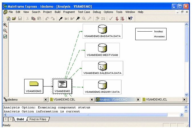Analysis Option je nástroj v rámci vývojového prostředí Mainframe Express IDE. Analyzuje strukturu aplikací, použité soubory, jak a kde jsou použity datové položky a jiné programové prvky a poskytuje informace o dalších detailech. Analysis Option dává náhled na práci aplikačního zdrojového kódu a tím umožňuje snížit komplexnost, náklady a rizika jeho změn. Může analyzovat i aplikace obsahující zdrojový kód nejen COBOLu, ale i PL/I a Assembleru. Analýzy jsou uloženy v databázi sdružené s aplikačním projektem MFE, která je automaticky aktualizována při rebuildu projektu. Analýzu je možno využít jako vstup do Component Generatoru, jako zdroj informací o aplikaci.